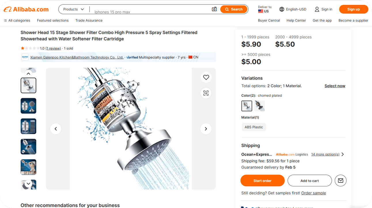 Product Name: Shower Head and 15 Stage Shower Filter Combo