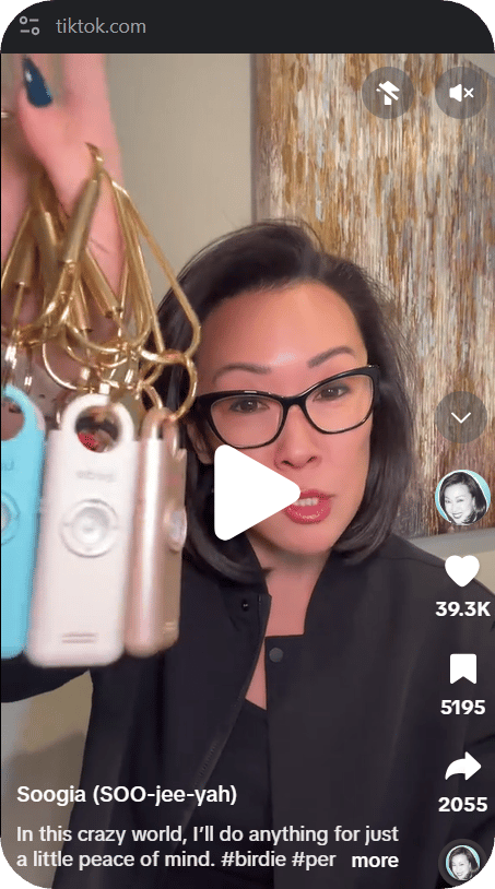Caption: "In this crazy world, Iāll do anything for just a little peace of mind. #birdie #personalalarm #peaceofmind @ShesBirdie"
