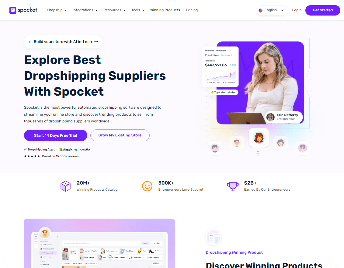 A Secret Tool Top Stores Use: Spocket is a dropshipping app for Shopify that offers a curated list of high-quality suppliers, making it easy to find and sell products.